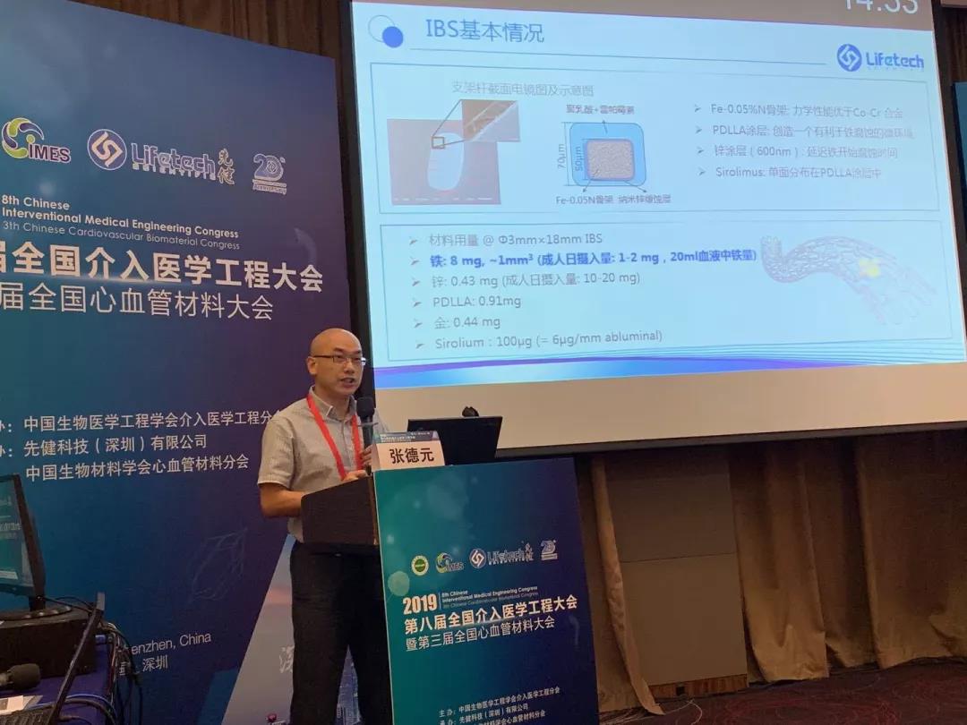 特别值得一提的是,在心血管介入器械与医疗技术及其临床应用分会场,先健科技首席科学家张德元博士向大家介绍了先健历经12年研发的IBS™铁基可吸收药物洗脱冠脉支架系统,从产品的设计特点和临床应用等方面进行了全面讲解。此外,张博士还公布了IBS™铁基可吸收药物洗脱冠脉支架系统目前的临床试验进展,目前已植入57例,手术成功率为100%, 15例6个月后影像随访结果显示,靶病变失败率 (Target Lesion Failure,TLF)以及严重不良事件(Serious Adverse Event,SAE)均为0,初步临床结果正面。张博士最后强调,先健IBS™铁基可吸收药物洗脱冠脉支架在力学性能、操控性和兼容性方面都与永久支架相同。演讲结束后,现场专家学者均对该创新产品表现出了浓厚的兴趣和热情,并对先健数十年如一日坚持自主创新的精神表示钦佩和赞赏。