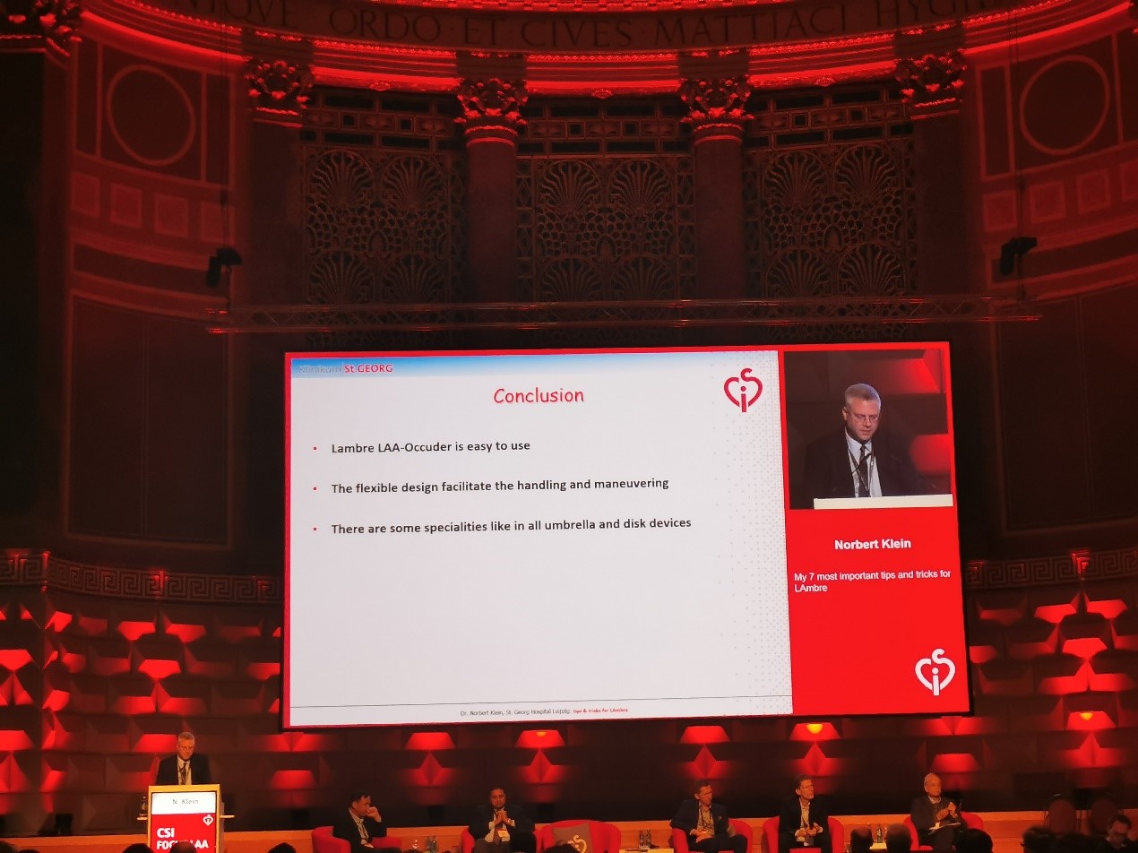 来自德国莱比锡Klinikum St. Georg医院的结构性心脏病专家Norbert Klein教授为大家分享了LAmbre™左心耳封堵器系统的临床使用经验,并对LAmbre™的产品优势进行了总结。