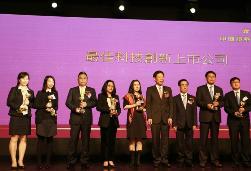 图:先健科技公司董事局主席兼首席执行官谢粤辉先生(左三)代表公司领取“最佳科技创新上市公司”奖项